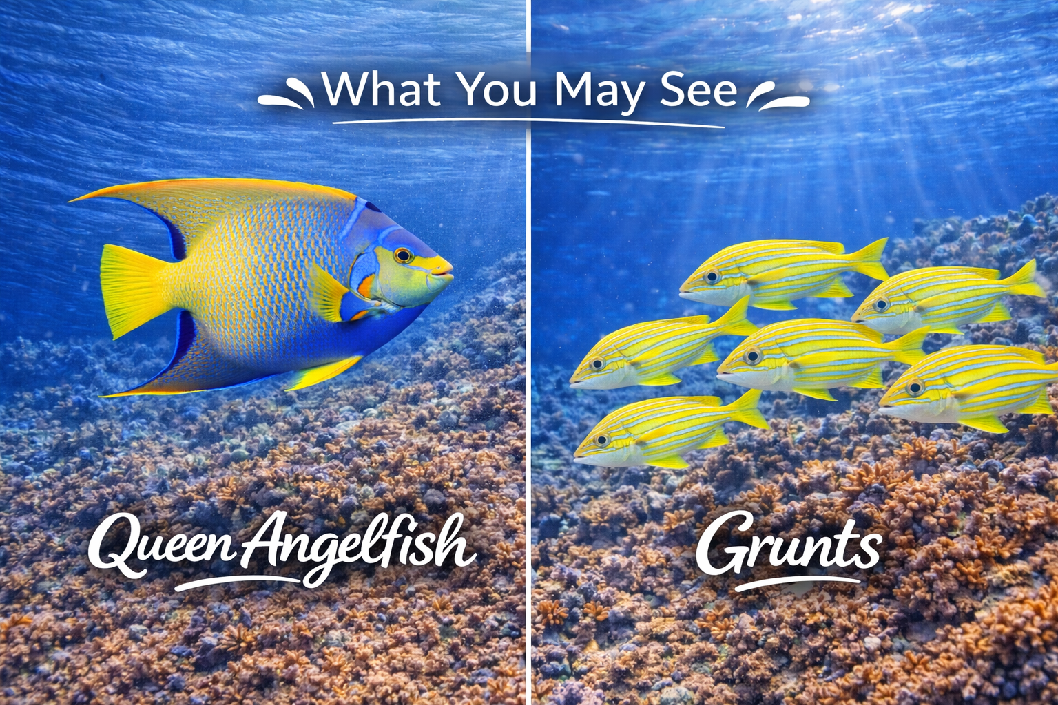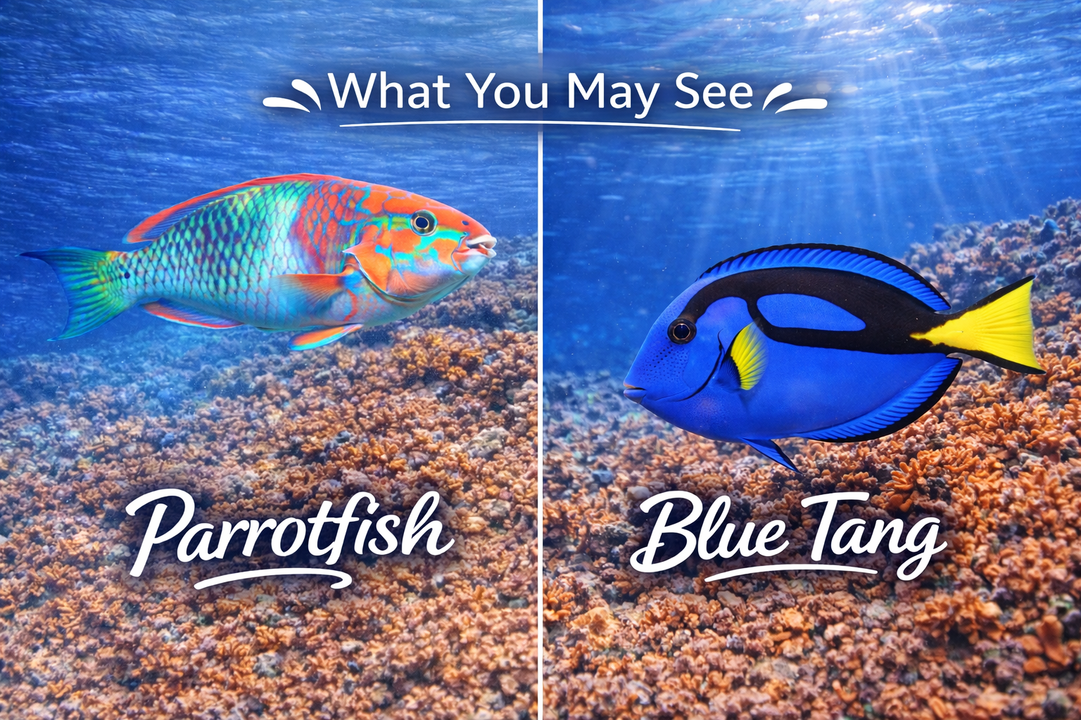 - 🐠 Tropical fish like parrotfish, angelfish, and snapper