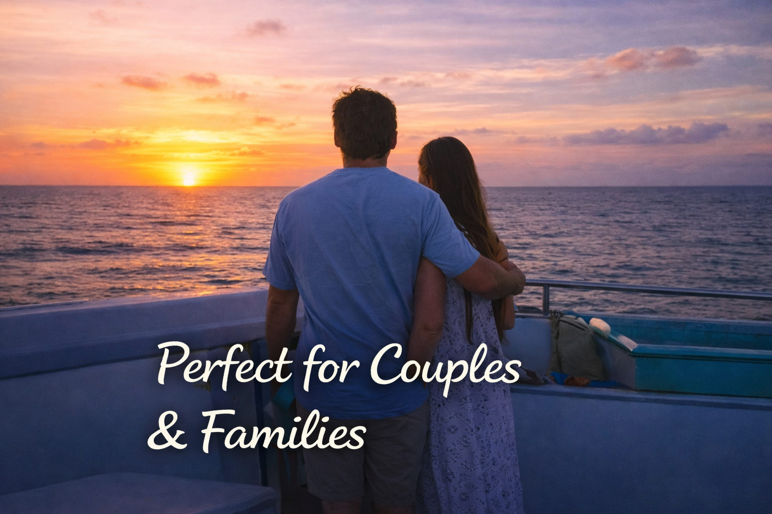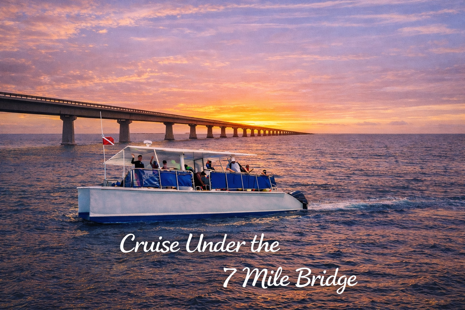 One of the highlights of the trip is cruising under the famous Seven Mile Bridge, giving you a one-of-a-kind vantage point and unforgettable photo moments. From there, we position perfectly for sunset—so you can relax and watch the sky transform over the water as the day comes to a close.